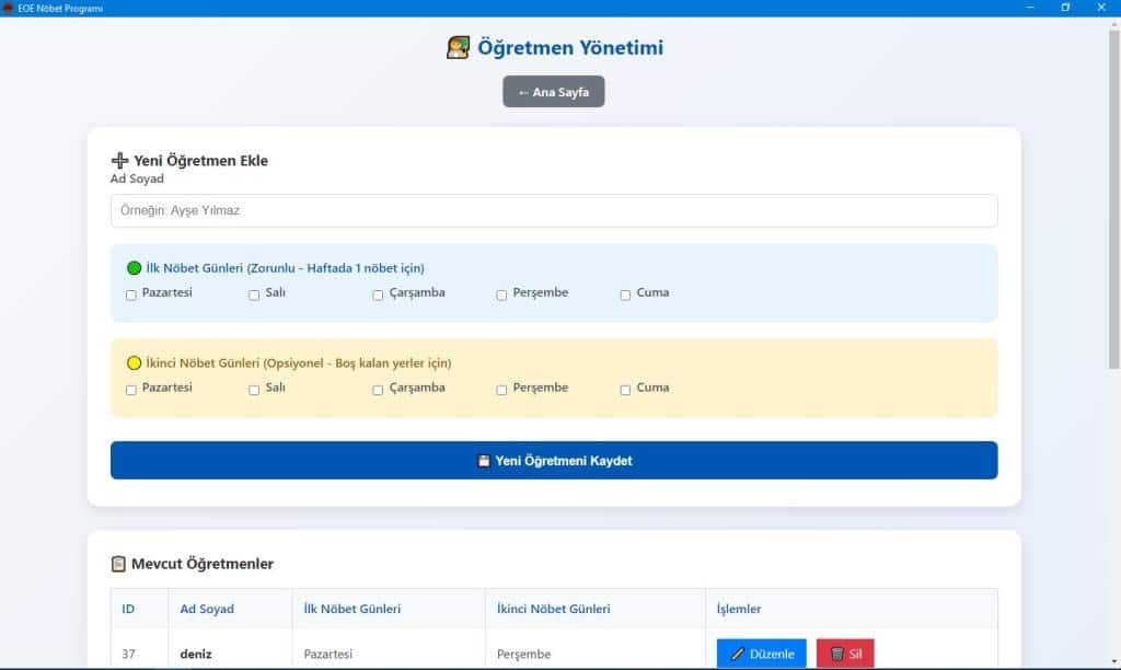 sınırsız nöbet yerine kadar ataya bilme öğretmenleri haftalık nöbet günlerine ayrı nöbet yerlerine otomatik atama